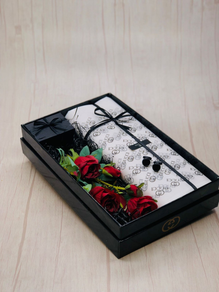 - تغليف خارجي (قماش & ورقي) فخم ومميز مع كرت اهداء حسب الطلب مجاناَ.